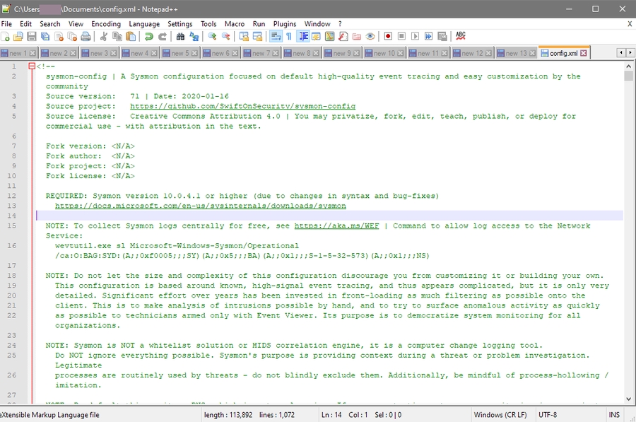 Notepad++ is a fantastic tool that I use for hours every day, but it's not ideal for editing large Sysmon config files, I recently looked at other options and found a setup that I was happy with - let's take a look at how you can replicate this.