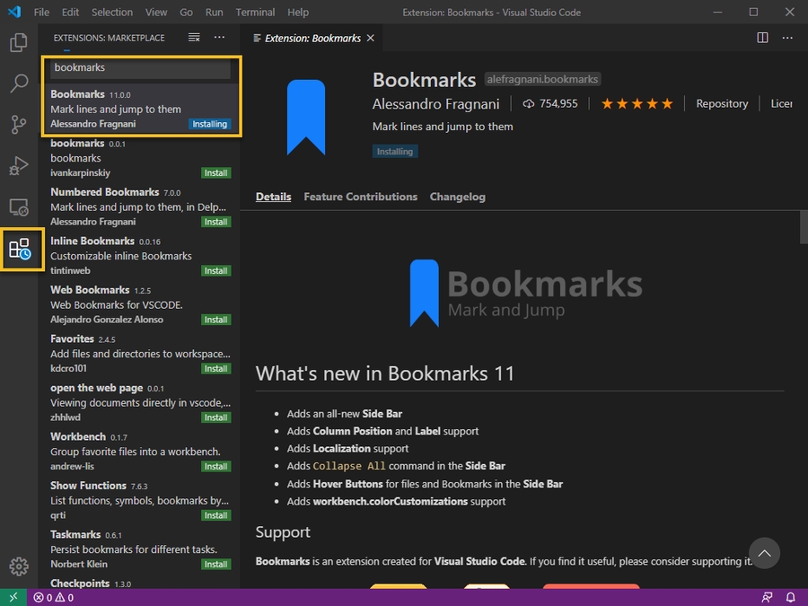 We'll also be installing the "Bookmarks" extension: