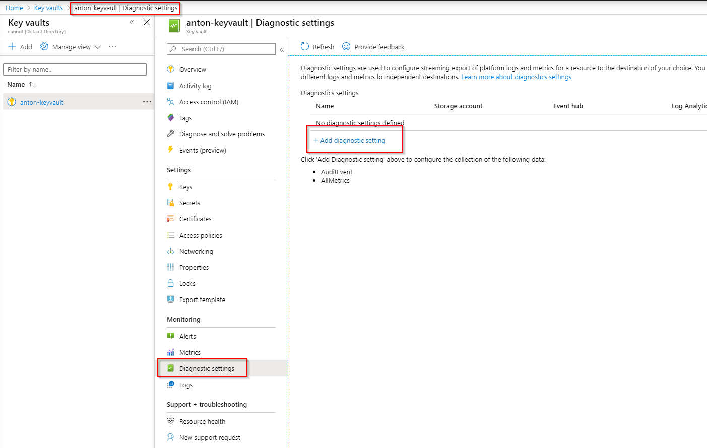 Now we're ready to point our Key Vault to this newly created Event Hub: