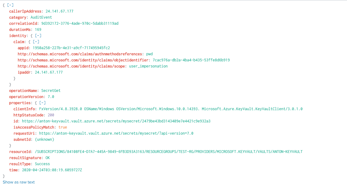 For today however, I am going to focus on Azure Key Vault Diagnostic Logs, streamed to an Event Hub and then picked up with Splunk using this Splunk App: https://splunkbase.splunk.com/app/4343/#/overview