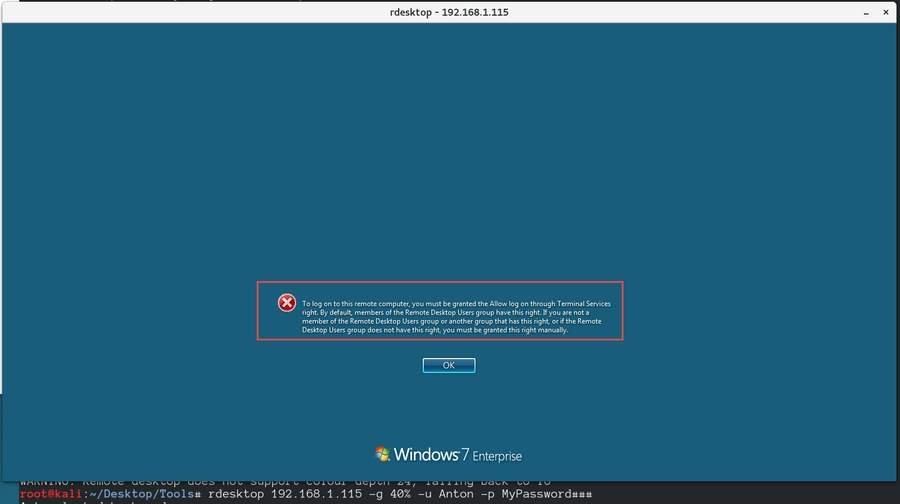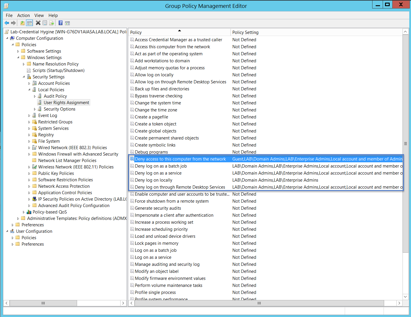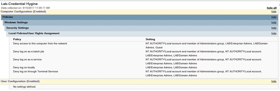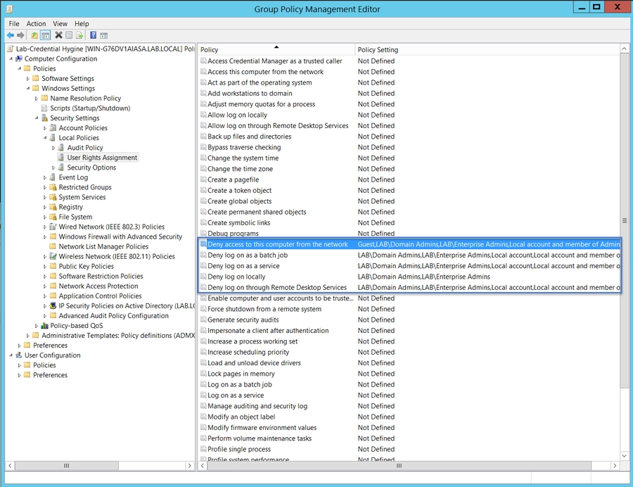 Recall that we also denied Domain Admins rights to log in locally or via Remote Desktop